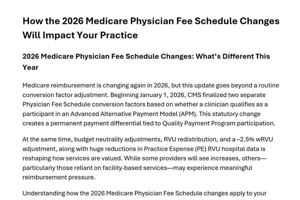 Fill out the form below to download  our How Will 2026 CMS Reimbursement Changes Affect You PDF